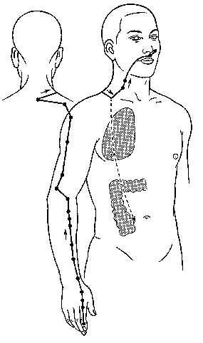 Dickdarm-Meridian aufgrund seines Verlaufs Einfluß auf den Zeigefinger, das