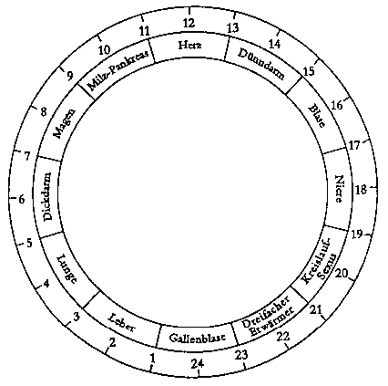 Meridiane. Jeder Meridian wird für einen Zeitraum von zwei Stunden maximal